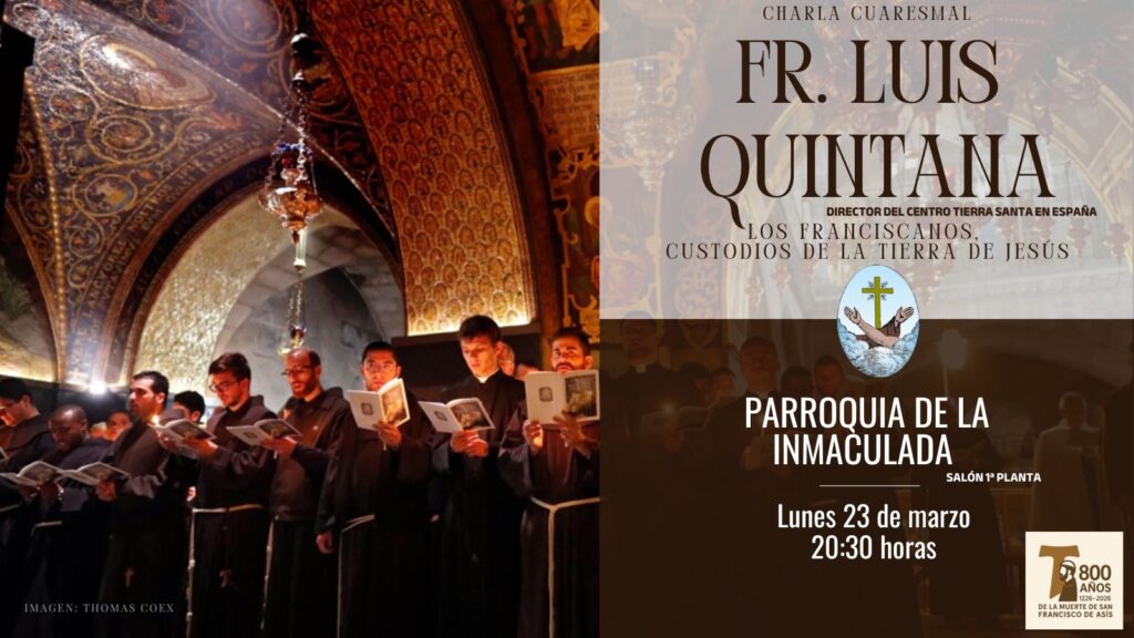 Última charla cuaresmal, impartida por Fr. Luis Quintana, OFM y director del Centro Tierra Santa en España. Lleva por título «LOS FRANCISCANOS, CUSTODIS DE LA TIERRA DE JESÚS», en el día previo a la inauguración de la exposición: LOS GUARDIANES DE LA TUMBA DE CRISTO.