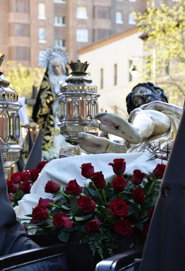 - En esta procesión los comisarios cargan sobre sus hombros las imágenes del Santísimo Cristo Yacente, el Stmo. Cristo de la Esperanza, Nuestra Señora de La Soledad y la Santa Cruz.