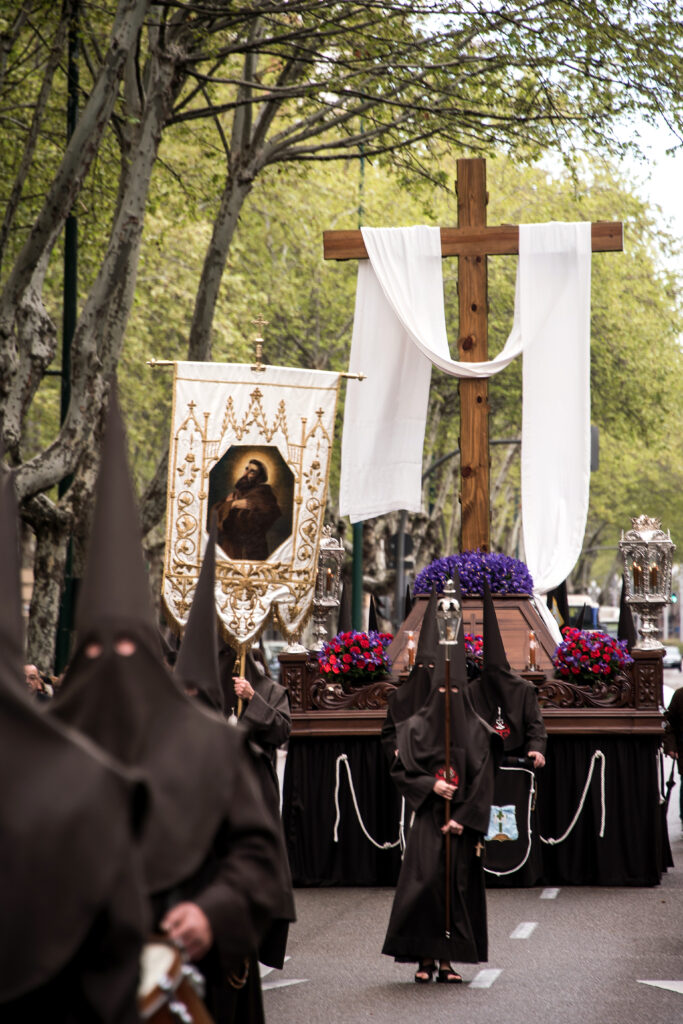 El Vía Crucis del Viernes Santo es una de las pocas procesiones de barrio que se conservan en la ciudad de Valladolid. Su sentido está, precisamente, en rezar y reflexionar en cada una de las 15 estaciones que están marcadas a lo largo del recorrido. Desde los años 60, la Cofradía de la Orden Franciscana Seglar no falla a su cita con el barrio de la Parroquia de la Inmaculada Concepción y desde su sede canónica, inicia un recorrido alrededor del Paseo de Zorrilla.